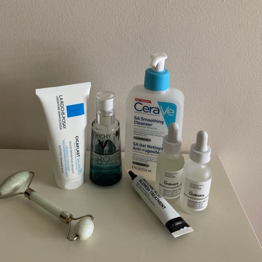 The alarm goes off at 9:00 so that I have some time to prepare in my online class. After 5 to 10 minutes laying in bed, I get up and go straight to the bathroom. That’s when I start my minimal skin care routine.
